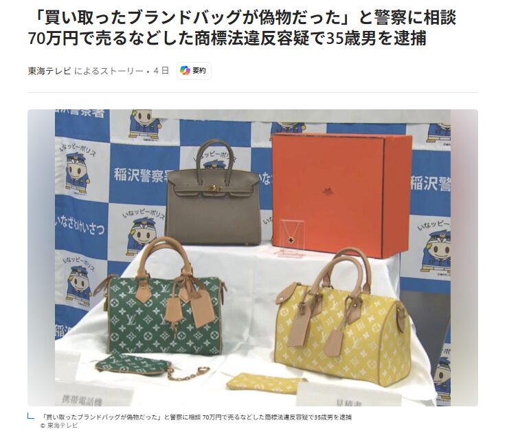 「買い取ったブランドバッグが偽物だった」と警察に相談 70万円で売るなどした商標法違反容疑で35歳男を逮捕